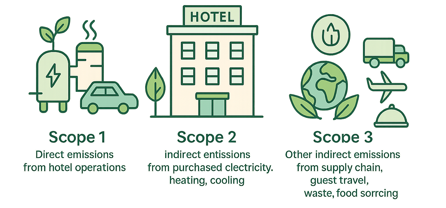 Emisiones generadas por fuentes controladas directamente por el hotel o restaurante, como: